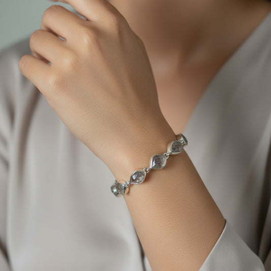 Herkimer Diamond Bracelet in 925 Silver For Enlightenment