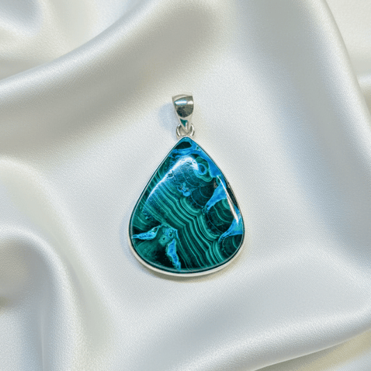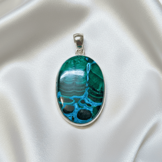 Malachite & Chrysocolla 925 Sterling Silver Pendant
