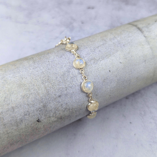925 सिल्वर रेनबो मूनस्टोन ब्रेसलेट - नई शुरुआत और भावनात्मक संतुलन का पत्थर