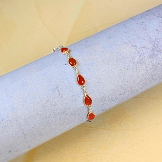 925 स्टर्लिंग सिल्वर में कार्नेलियन मोटिवेशन ब्रेसलेट - नाशपाती कट एलिगेंस