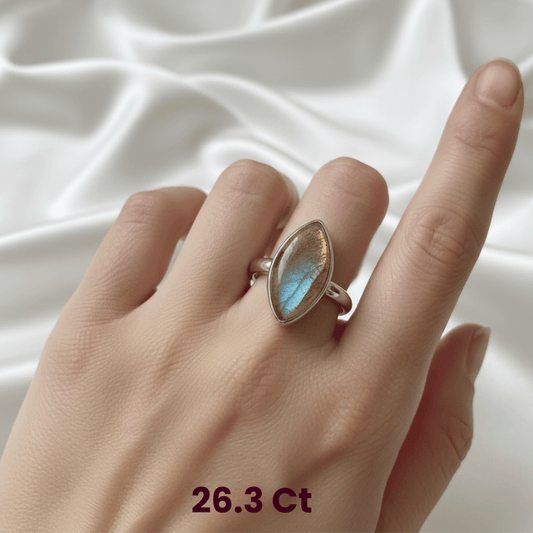 लैब्राडोराइट 925 स्टर्लिंग सिल्वर रिंग - जादू और परिवर्तन का पत्थर