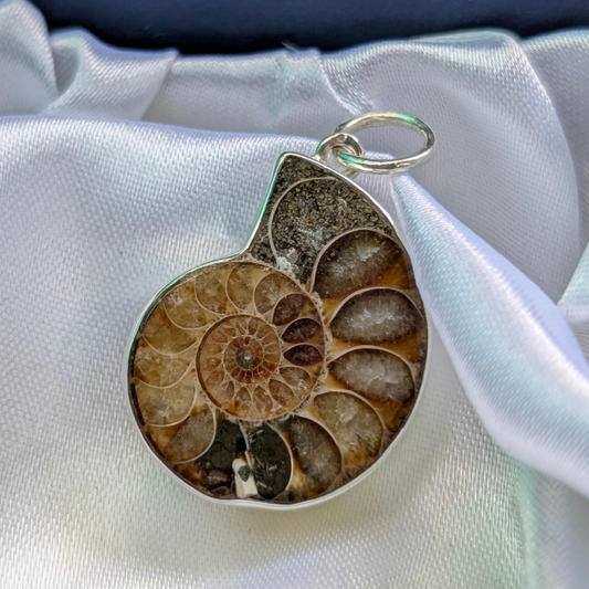 925 स्टर्लिंग सिल्वर पेंडेंट के साथ अम्मोनाइट - • प्राचीन ऊर्जा • धन चुंबक • आध्यात्मिक विकास
