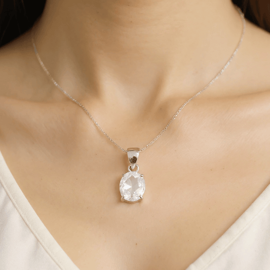 क्लियर क्वार्ट्ज़ डायमंड कट 925 स्टर्लिंग सिल्वर पेंडेंट - स्पष्टता • प्रवर्धन • उपचार
