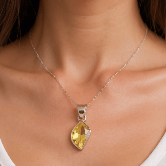 सिट्रीन डायमंड-कट 925 स्टर्लिंग सिल्वर पेंडेंट - प्रचुरता • आत्मविश्वास • आनंद