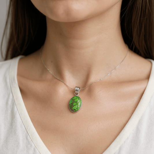 925 स्टर्लिंग सिल्वर में हरा कॉपर फ़िरोज़ा पेंडेंट - उपचार • संचार • दृढ़ विश्वास