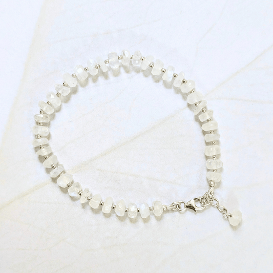 रेनबो मूनस्टोन 925 स्टर्लिंग सिल्वर ब्रेसलेट - स्त्री ऊर्जा, अंतर्ज्ञान और नई शुरुआत को अपनाएँ