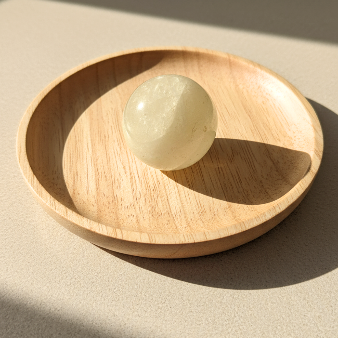 Keep your crystals in your selenite bowl on your workspace, altar, or creative corner — where their energy can stay active and radiant. Recharge them under Full Moon or New Moon light once a month to renew their vibration.