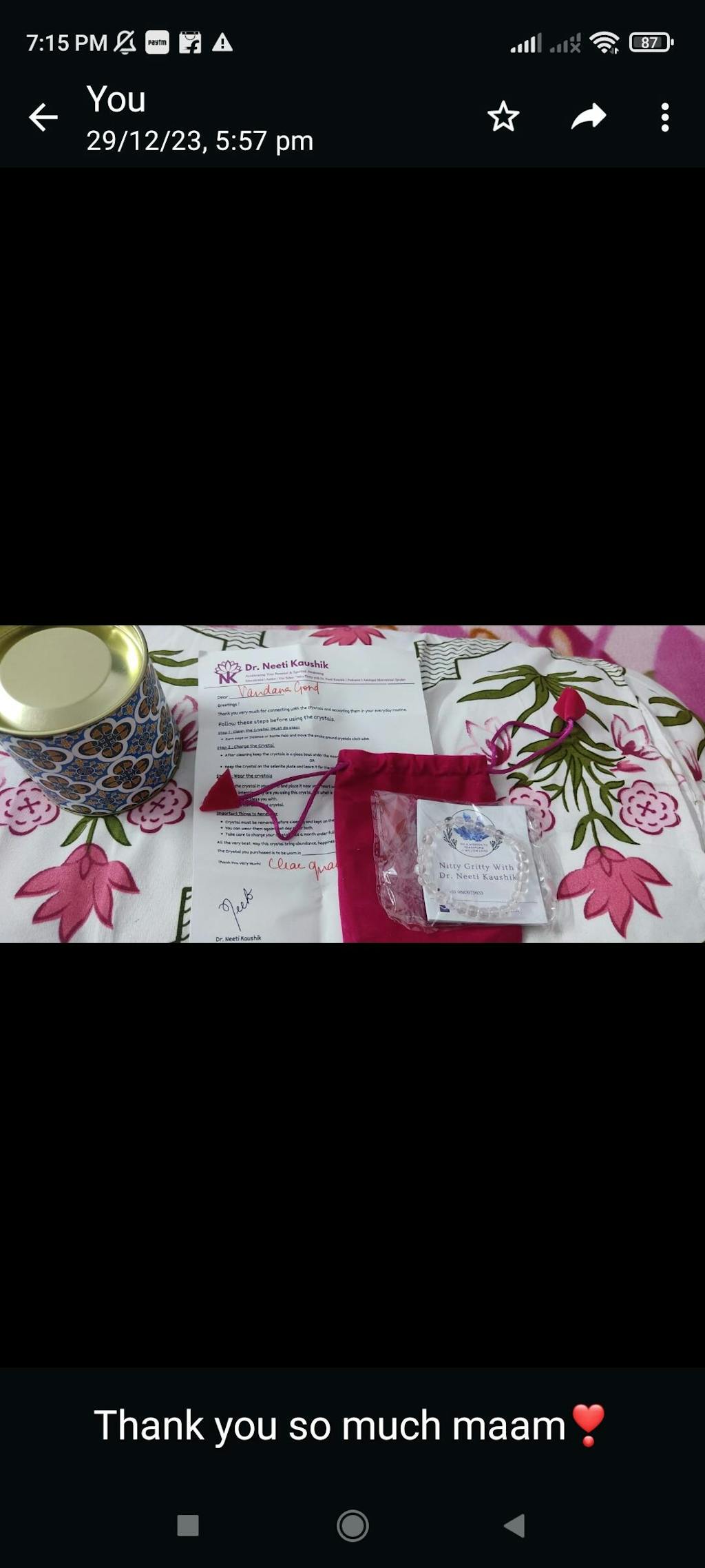 उत्तर: हमारी वेबसाइट से प्राप्त क्लियर क्वार्ट्ज AAA गुणवत्ता का है और डॉ. नीति कौशिक द्वारा व्यक्तिगत रूप से चार्ज किया जाता है, जो इसे इसकी बढ़ी हुई शुद्धता और ऊर्जा संरेखण के कारण अधिक मूल्यवान बनाता है।