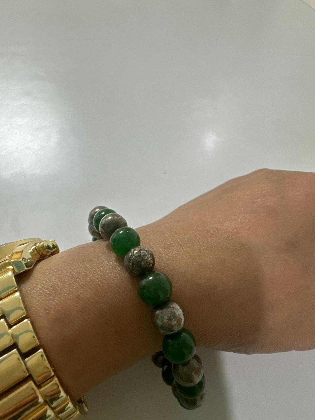 धन प्राप्ति हेतु हरा जेड + पाइराइट ब्रेसलेट-(8 मिमी)