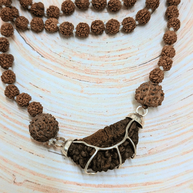 त्रिवेणी शक्ति रुद्राक्ष माला - ज्ञान, धन और दिव्य कृपा (1 मुखी, 5 मुखी और 7 मुखी रुद्राक्ष)