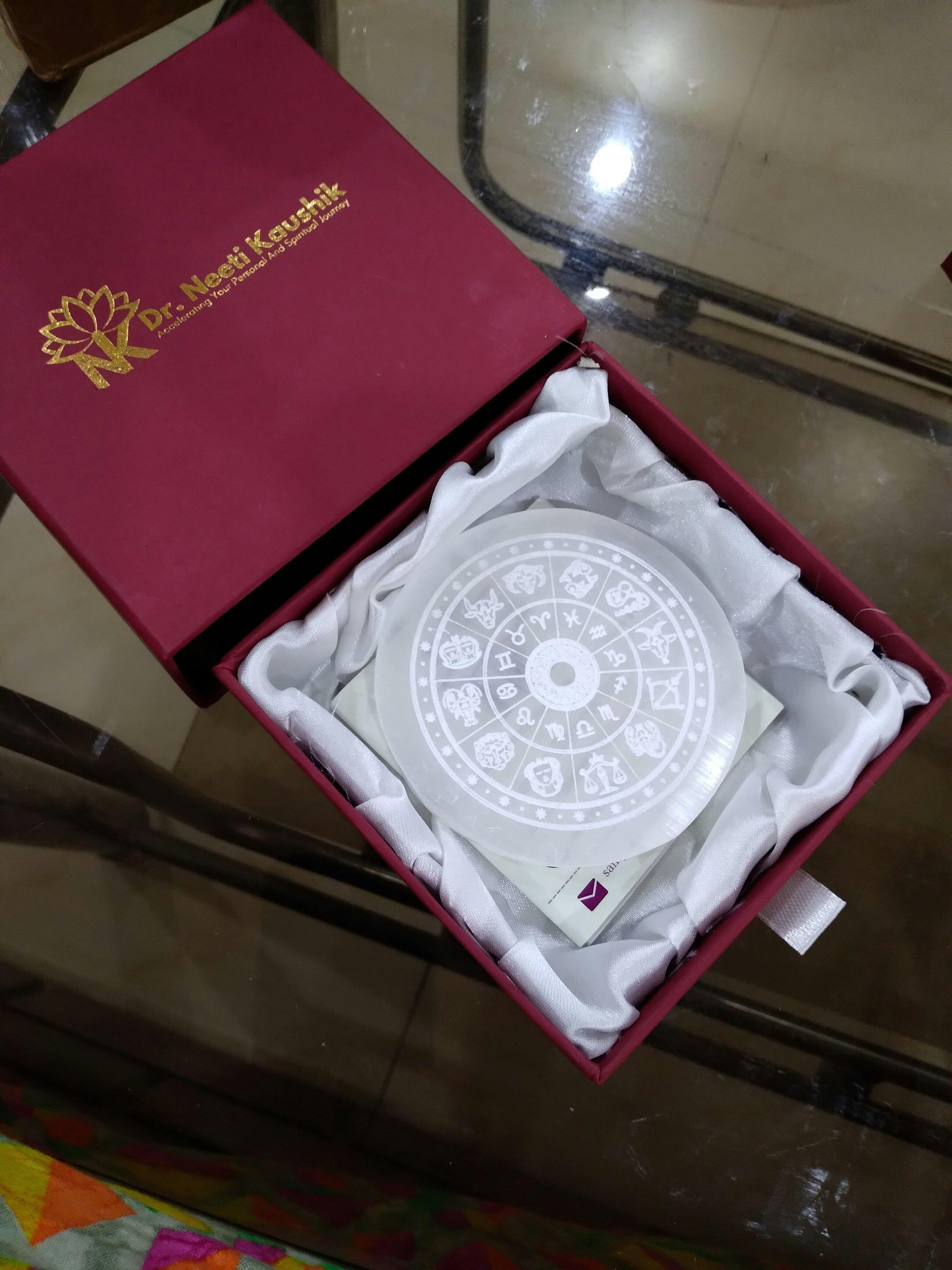 Selenite Charging Plate (8 cm) with All Zodaic Signs